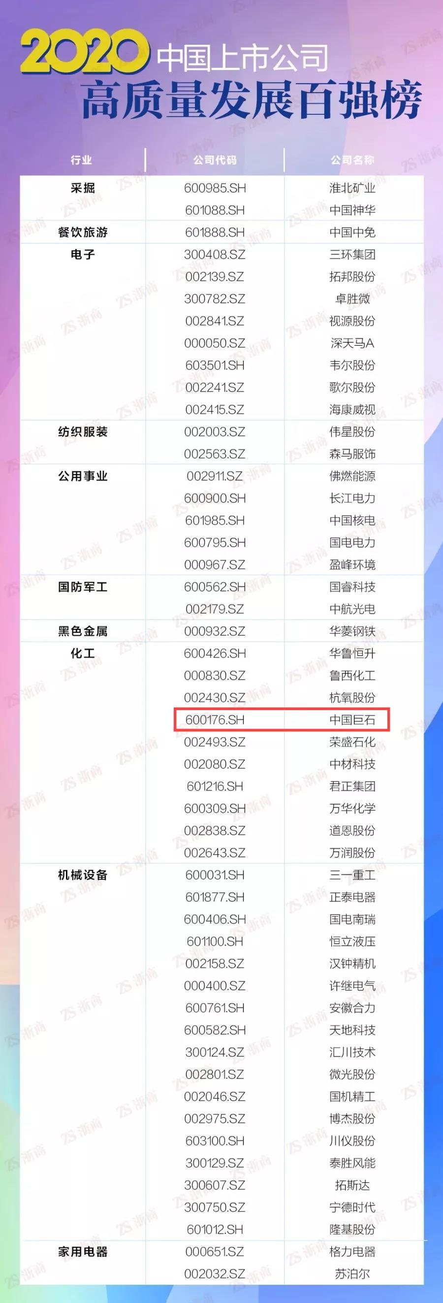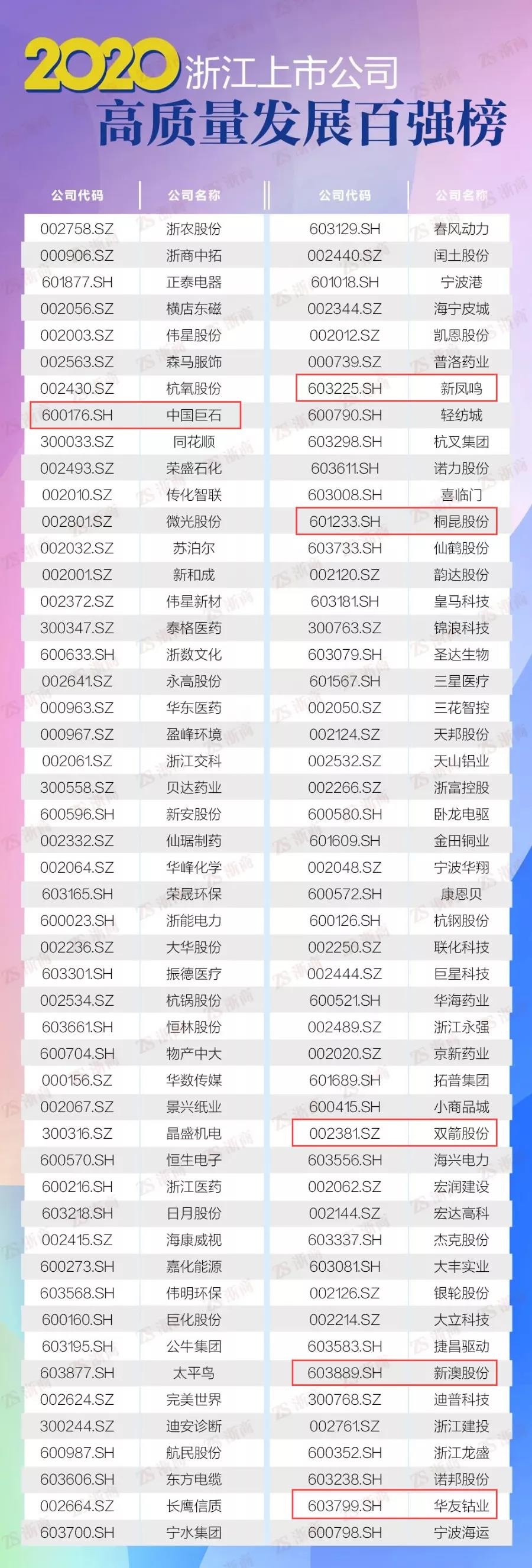 桐鄉(xiāng)市上市公司強(qiáng)勢(shì)入圍!其中,中國(guó)巨石入圍2020中國(guó)上市公司高質(zhì)量發(fā)展百?gòu)?qiáng)榜;中國(guó)巨石、桐昆股份、新鳳鳴、雙箭股份、新澳股份、華友鈷業(yè)入圍2020浙江上市公司高質(zhì)量發(fā)展百?gòu)?qiáng)榜!