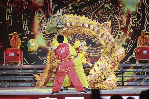 為了慶祝3·18工程點火成功,員工們用《舞龍舞獅》表達心中的喜悅,巨石的年輕小伙兒舞得熱火朝天,惟妙惟肖,引來臺下陣陣掌聲。
