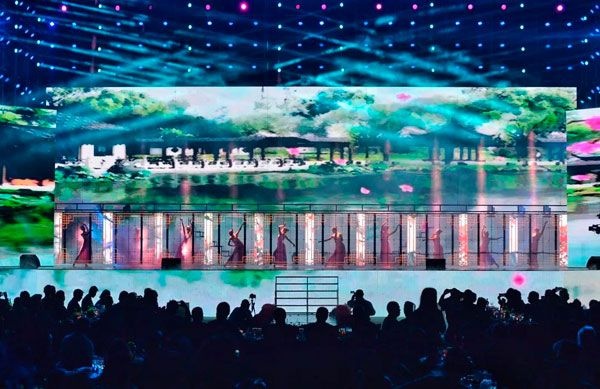 震撼的燈光秀,使人仿佛進(jìn)入一個璀璨流彩絢麗的時空。首次出現(xiàn)在巨石年會晚會現(xiàn)場的威亞,結(jié)合了打鼓和燈光的元素,視覺效果令人眼前一亮。