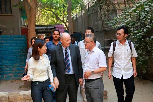 上午,巨石埃及公司黨支部書(shū)記、副總經(jīng)理錢(qián)志偉與總經(jīng)理助理索里曼等一行人驅(qū)車(chē)3小時(shí)來(lái)到開(kāi)羅市麥阿迪區(qū)的非洲希望學(xué)校。