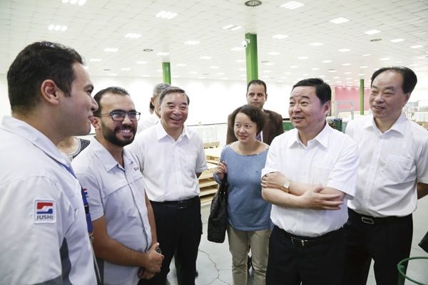 8月的埃及,驕陽似火,3日下午,正在埃及調(diào)研的國資委黨委書記郝鵬,冒著酷暑,驅(qū)車來到位于紅海之濱的巨石埃及年產(chǎn)20萬噸玻璃纖維生產(chǎn)基地實地調(diào)研黨建工作、生產(chǎn)經(jīng)營和企業(yè)發(fā)展情況。中國建材集團黨委書記、董事長宋志平陪同調(diào)研,中國巨石黨委副書記、副總裁周省霖熱情接待。