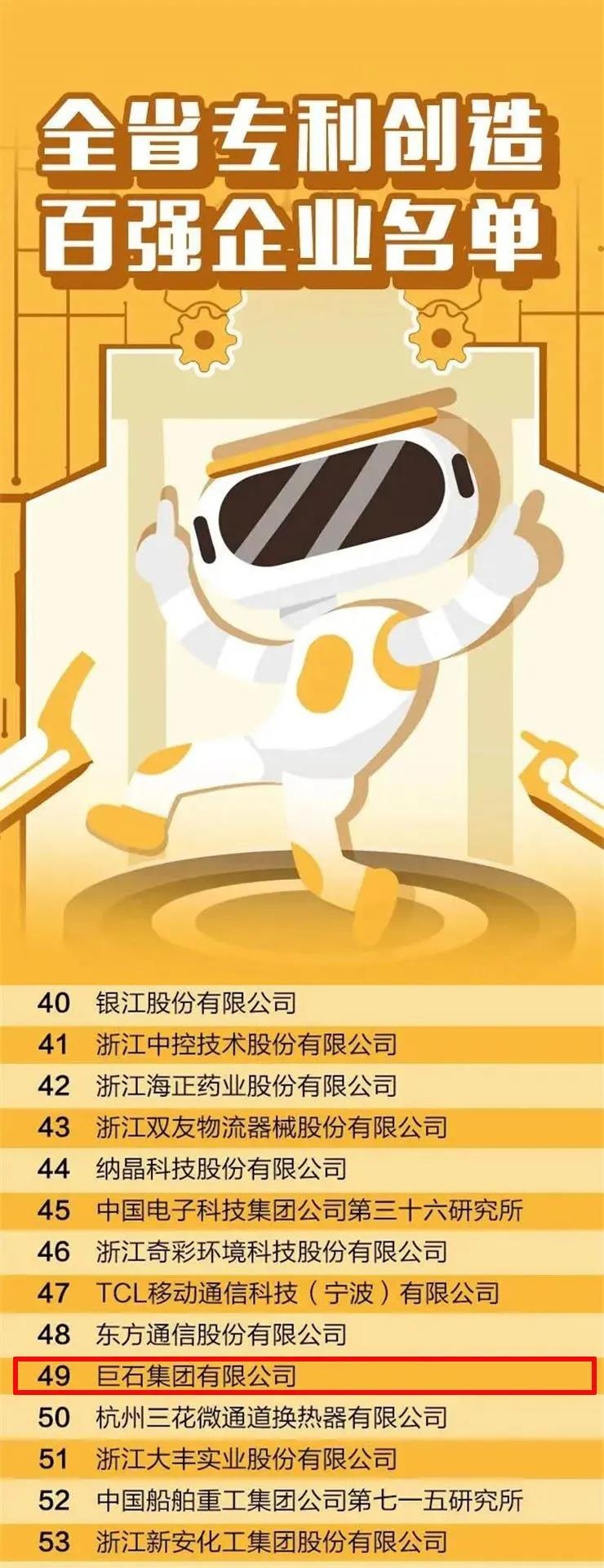 巨石再次榮登浙江省創(chuàng)造力百強企業(yè)榜單