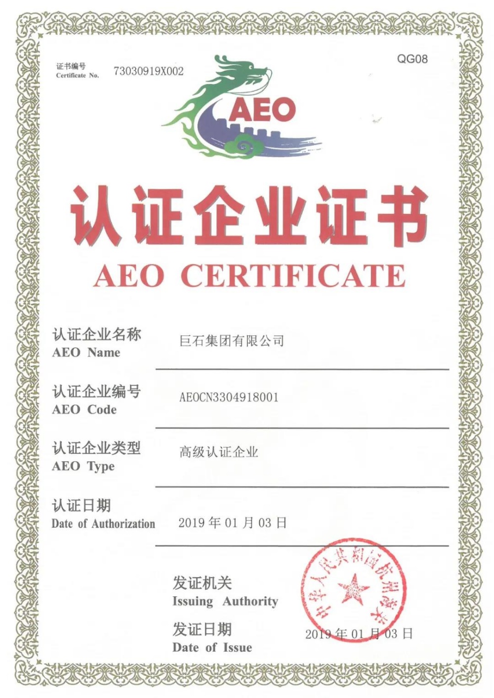 巨石通過海關(guān)AEO高級認(rèn)證重新認(rèn)證