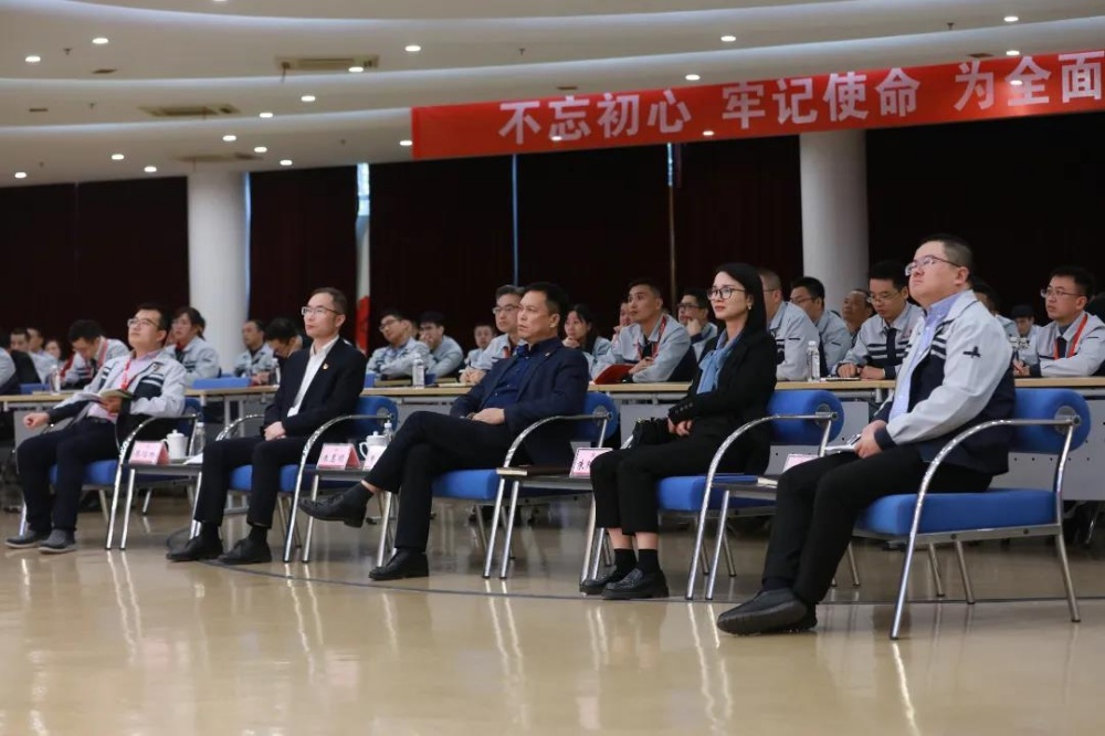 桐鄉(xiāng)經(jīng)濟(jì)開發(fā)區(qū)黨工委委員、桐鄉(xiāng)市高橋街道黨委委員朱陽紅,中國巨石黨委委員、副總裁,巨石集團(tuán)副總裁曹國榮,中國巨石黨委委員、紀(jì)委書記中朱惠順,中國巨石全球銷售總監(jiān)張志堅(jiān),巨石集團(tuán)行政管理總監(jiān)廖信林,以及公司150名黨員在決賽現(xiàn)場聆聽黨課。