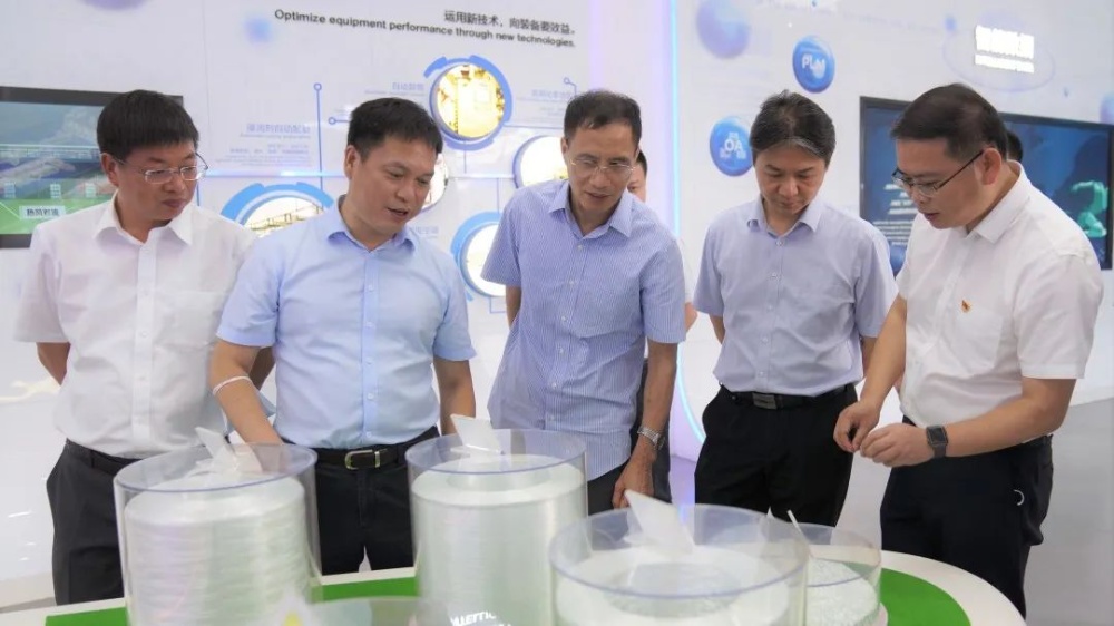 座談會(huì)前,謝曉波副主任一行在曹國(guó)榮副總裁的陪同下深入中國(guó)巨石智能制造基地生產(chǎn)線,實(shí)地查看未來工廠建設(shè),了解產(chǎn)品開發(fā)和應(yīng)用等情況。