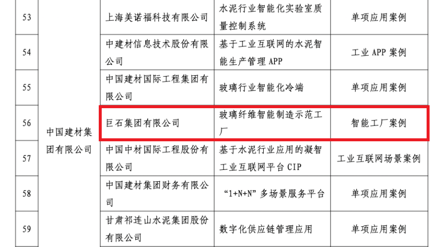 喜報(bào)!巨石智能工廠入選全國典型案例