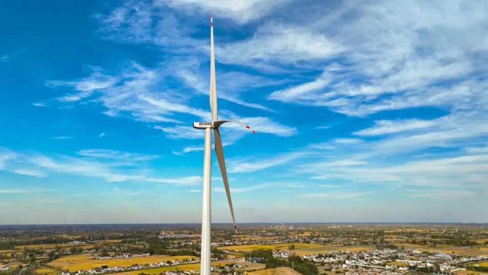 在中國巨石淮安零碳智能制造基地,一座180多米高的大風(fēng)車迎風(fēng)轉(zhuǎn)動(dòng),源源不斷地將風(fēng)能轉(zhuǎn)化為電能。所發(fā)綠電,一部分被輸送到零碳智能制造基地用于玻纖生產(chǎn),另一部分通過國家電網(wǎng)輸送到千家萬戶,實(shí)現(xiàn)生產(chǎn)、生活電力供應(yīng)的綠色化。