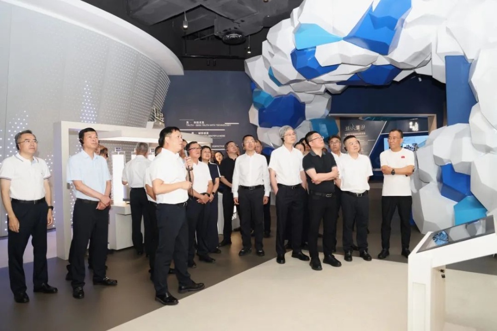 在中國巨石智慧展示中心,曹國榮副總裁向考察團介紹了公司人大代表履責(zé)、技術(shù)創(chuàng)新、質(zhì)量管理、產(chǎn)品及應(yīng)用領(lǐng)域等情況。