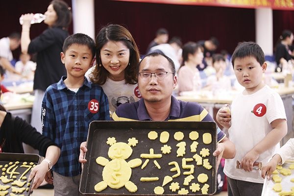 都說吃甜品容易使人幸福,親子烘焙環(huán)節(jié)就是這樣一個讓家長與孩子一起制造甜蜜的環(huán)節(jié),拿到面粉團,家長和孩子們就開始制作起來,也不管手上、衣服上是否粘上了面粉。有制作成蝴蝶、海豚、小鳥等各式小動物的,也有搞怪制作成數(shù)字條、飛餅、笑臉等形狀各異的造型。家長和孩子分工明確,揉面、制作、刷油、擺盤等環(huán)節(jié)一個不落,看著原本空蕩蕩的烤盤被自己的成果填滿,每個人臉上都露出了開心的笑容。