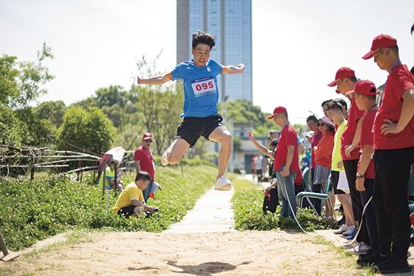 賽場(chǎng)上,100米預(yù)賽的飛人們?cè)谂艿郎虾魢[而過(guò)的身影引得現(xiàn)場(chǎng)發(fā)出一陣陣歡呼與尖叫,實(shí)力相近的選手在沖線(xiàn)的那一刻更是讓觀(guān)眾無(wú)法用肉眼判斷誰(shuí)先誰(shuí)后。當(dāng)觀(guān)眾們還未從百米飛人大戰(zhàn)的余韻中跳脫出來(lái)的時(shí)候,跳遠(yuǎn)的比賽掀起了當(dāng)天的高潮。3米、4米、5米,選手們一次次刷新著記錄,起身飛躍、黃沙飛揚(yáng),來(lái)自四分廠(chǎng)的蔣家鳴以5.66米的成績(jī)打破了跳遠(yuǎn)的記錄,也引得現(xiàn)場(chǎng)無(wú)數(shù)的歡呼。
