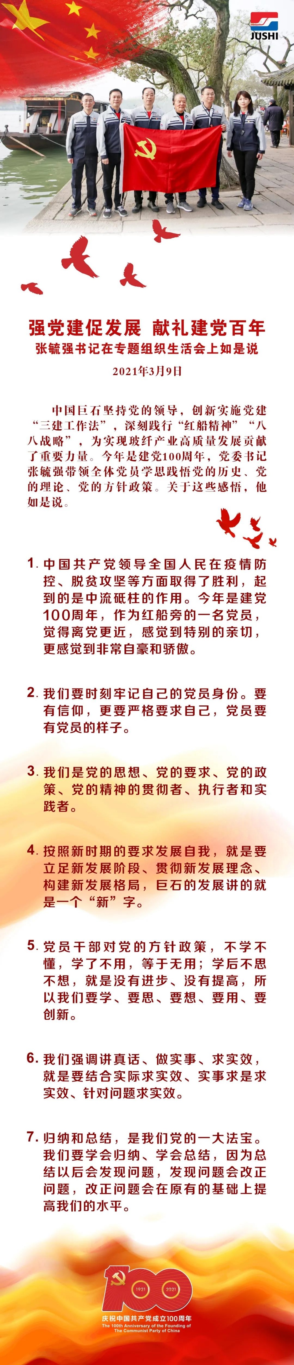 強(qiáng)黨建促發(fā)展 獻(xiàn)禮建黨百年 2021-04-15 10:27:34 中國巨石股份有限公司 上一條聆聽員工聲音 凝聚發(fā)展合力|巨石集團(tuán)召開總裁與員工交流座談會 下一條中國建材集團(tuán)“健跑百年路 奮斗新征程”(嘉興站)活動成功舉行