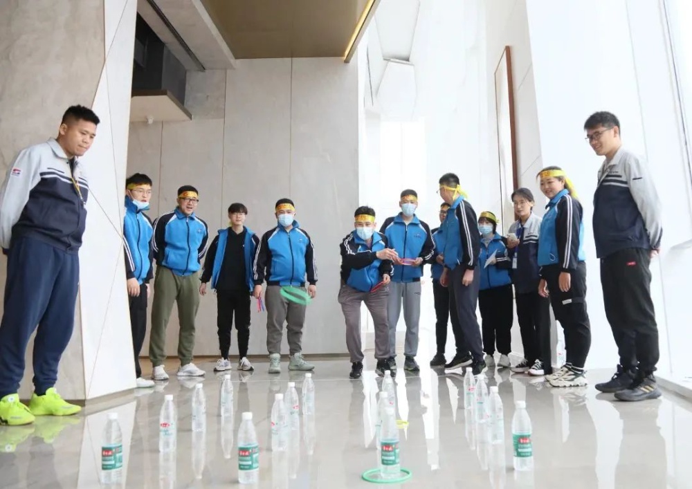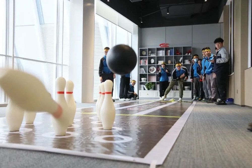 團隊趣味活動環(huán)節(jié)共設(shè)置了9個趣味項目。一字長繩、肩膀指令、我是大嗓門、你劃我猜、夾彈珠這幾個項目主要考驗了選手們的團結(jié)度和默契程度,彈射的公仔、定點投籃、保齡球、套圈等環(huán)節(jié)極大考驗了選手們的精準度。