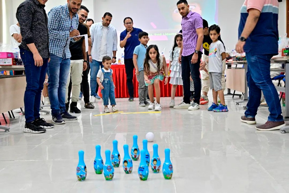 此外,家屬們參加公司準備的親子活動,活動內容包括趣味保齡球、禮物套圈圈等,派駐中方員工子女與埃方員工子女同臺競技,趣味十足。之后孩子們又前往游樂園游玩了碰碰車、卡丁車、旋轉木馬、室內障礙穿越等娛樂項目活動。巨石埃及公司采購部經理助理楊洋的兒子楊子昂,在爸爸媽媽的陪伴下無比興奮:“我的爸爸是個大忙人,經常不能陪我,今天他陪了我一整天,我很高興,而且我今天認識了很多埃及的小朋友,我們一起玩了蕩秋千!”